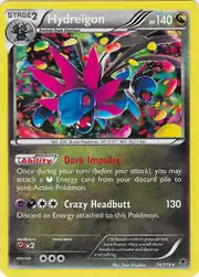 Hydreigon (Japanese: サザンドラ Sazandora) is a Dragon-type Stage 2 Pokémon card. It was first released as part of the Phantom Forces expansion.