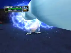 Blastoise points its cannons at the opponent and fires an extremely powerful stream of water from each of the cannons and its mouth at the opponent. | ||