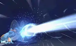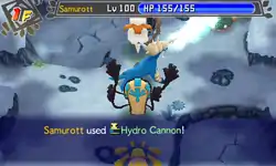 | Samurott opens its mouth. Then, a glowing light blue ball of water appears in front of Samurott's mouth and Samurott fires it at the opponent. | |||