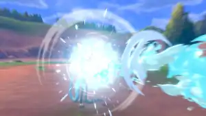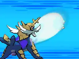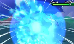 | Empoleon opens its beak and a blue flash of light appears in front of it. Then, a glowing light blue ball of water appears in front of Empoleon's beak where the flash was and Empoleon fires it at the opponent. Sometimes, Empoleon fires three light blue balls of water, one after the other. | |||