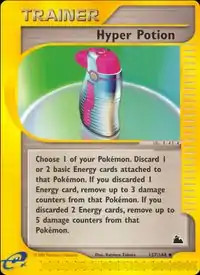 Hyper Potion was introduced as a Trainer card in the Pokémon Trading Card Game during the English e-Card Series (the Japanese e-Card Era) in the Skyridge expansion with artwork by Katsura Tabata.