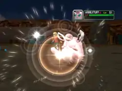 Jigglypuff's eyes glow light blue and it fires multiple transparent rings that are outlined in light blue from its mouth at the opponent. | ||