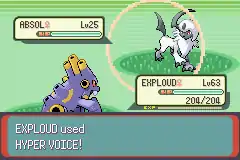 Exploud opens its mouth and the inside of it starts to glow brightly. It then releases a powerful blast from its mouth at the opponent that causes a large explosion. | ||