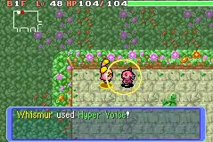 In Red Rescue Team and Blue Rescue Team and Explorers of Time, Darkness and Sky, Hyper Voice is a move with 18 base power, 90% accuracy and 12 PP. The user attacks enemy in front of them, cutting corners. This move is affected by Muzzled status condition. Being a sound-based move, it is blocked by Soundproof.