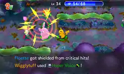 Hyper Voice is one of Jigglypuff's special move Customization, which can replace Sing. The move's effect is visually similar to Sing, except that it lets out shock waves that can hit the opponent 3 times.