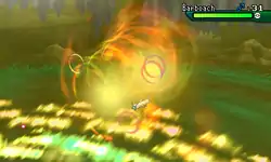 | Pyroar fires a shockwave from its mouth at the opponent. | |||