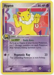 Hypno (Japanese: スリーパー Sleeper) is a Psychic-type Stage 1 Pokémon card. It was first released as part of the EX FireRed & LeafGreen expansion.