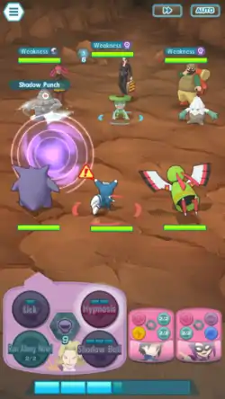 Gengar releases a trail of smoke from one of its hands. The smoke wraps around the opponent and lifts them into the air, putting them in a deep trance or sleep. | ||