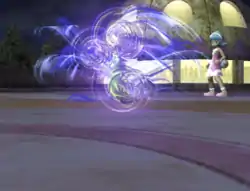 Drifblim grabs the opponent's face and its body becomes outlined in light blue. It then fires a yellow 'X' from the 'X' on its face at the opponent. When the opponent gets hit, it falls asleep. | ||