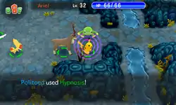 | The opponent falls asleep when the user sends out waves from its body. | |||