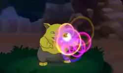 Munna releases a spiraling psychic energy from the front of its body at the opponent, or Munna releases two black beams of energy from its eyes at the opponent. As the beams of energy fire at the opponent, they combine into one large beam. | ||