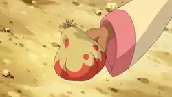 In Oshawott's Lost Scalchop!, Ash's Oshawott used an Iapapa Berry as a temporary replacement for his lost scalchop. However, it ultimately failed when Ash's Pikachu used Thunderbolt on it, and it was burned and split in half, revealing it to be a stone fruit. Iris and Cilan tasted the Berry afterward and claimed that it brought out the flavor.