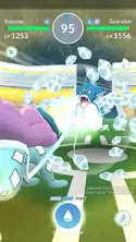 Gyarados's mouth becomes covered in light blue, icy energy. It then bites down on the opponent, or Gyarados's fangs become covered in light blue, icy energy, and it bites down on the opponent with them. | ||