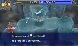 Glaceon opens its mouth and fires multiple shards of ice from its mouth at the opponent. Sometimes, its forehead glows light blue when using the move. | ||