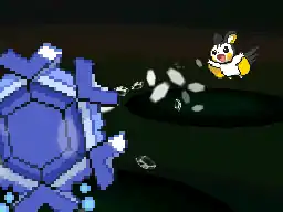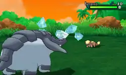 Piloswine creates a glowing, light blue ball of ice in front of its nose and fires it at the opponent. When it hits the opponent, the opponent glows light blue and becomes frozen. | ||