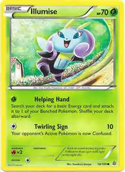 Illumise (Japanese: イルミーゼ Illumise) is a Grass-type Basic Pokémon card. It is part of the Primal Clash expansion.