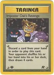 Imposter Oak's Revenge (Japanese: にせオーキドの逆襲 False Okido's Counterattack) is a Trainer card. It is part of the Team Rocket expansion.
