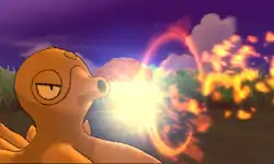 | Pyroar shoots a beam of orange, yellow, red, and black fire at the opponent. | |||