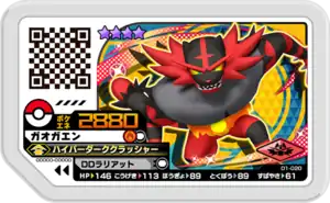Incineroar (Japanese: ガオガエン Gaogaen) is a Grade 4 Pokémon Ga-Olé disk. It is part of the first Dash set.