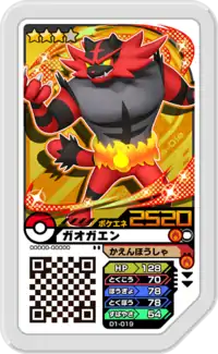 Incineroar (Japanese: ガオガエン Gaogaen) is a Grade 3 Pokémon Ga-Olé disk. It is part of the first Dash set.