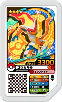 Infernape (Japanese: ゴウカザル Goukazaru) is a Grade 3 Pokémon Ga-Olé disk. It is part of the fourth Grand Rush set.