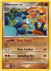 Infernape (Japanese: ゴウカザル Goukazaru) is a Fighting-type Stage 2 Pokémon card. It is part of the Stormfront expansion.