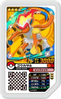Infernape (Japanese: ゴウカザル Goukazaru) is a Grade 3 Pokémon Ga-Olé disk. It is part of the fifth Ultra Legend set.