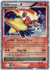 Infernape (Japanese: ゴウカザル Goukazaru) is a Fire-type Level-Up Pokémon LV.X card. It was first released as part of the Diamond & Pearl expansion.