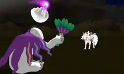 The leaves on Oranguru's fan glow multi-colored and it thrusts it forward, causing the target to become outlined in a white glow. The target then uses its most recent move on a different target that Oranguru chooses. | ||