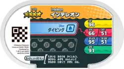 Inteleon (Japanese: インテレオン Intereon) is a Grade 4 Pokémon Mezastar tag. It is part of the first set.