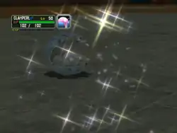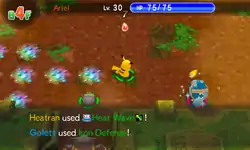 Lairon's body becomes outlined in light blue and its body briefly shines, increasing Lairon's defense. | ||