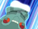 | The outline of Bastiodon's head glows light blue and a white shine goes down its face. Bastiodon can then stop attacks. | |||