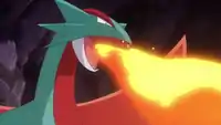 J tends to use Salamence for destructive purposes as well. In Pokémon Ranger and the Kidnapped Riolu! (Part 1), she commanded it to destroy a forest with its Flamethrower to smoke out the Riolu she wanted to capture.