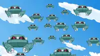 The henchmen made a brief appearance in The Needs of Three! alongside J after her successful mission to capture Mesprit, Azelf, and Uxie. They were aboard her ship when it was destroyed by the lake guardians. It is unknown whether any of the henchmen were able to get off the ship before it exploded.