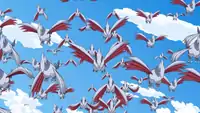 | J's henchmen used these Skarmory to attack the Battle Pyramid. They were later defeated by Ash's Pikachu's Thunderbolt.