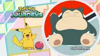 They come across a Snorlax who suddenly grows to gigantic size and sprawls across a railroad crossing, still fast asleep! As the train speeds toward them, Scorbunny shows up to help. Working together, they get the Dynamax Snorlax out of the way in the nick of time—and Scorbunny convinces Goh to become its Trainer!