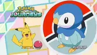 A particularly lean Piplup leaps from the ocean, and collapses from exhaustion. The boys take it back to the Cerise Laboratory, where Piplup proceeds to gorge itself on food. Chloe soon returns home to find everyone staring at something. Goh explains that it is a Piplup, but Chloe looks down at her feet and only sees an empty food bowl. Mimey frantically enters the room, and orders everyone to the bathroom. There, they watch as Piplup swims laps in the trough. Ren then orders everyone into the lab, where they receive a call from Piplup's Trainer, Lauren. She explains that Piplup swam off from Snowpoint City, a northern city in Sinnoh, without reason. Piplup, however, appears unhappy to see Lauren again. Professor Cerise replies that they will return Piplup, so Ash and Goh volunteer themselves for the task.