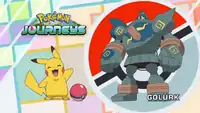 Upon arriving in the Unova region, Ash and Goh hear about a place they just have to explore: Colossus Ruins! First, they must cross the fiery-hot Desert Resort, which seems impossible. But an explorer named Kira shows them how to glide across it, and soon they land at their destination. After a perilous journey through the ruins, they discover the identity of the Colossus: a giant Golurk! Designed to protect an ancient city at all costs, the awakened Golurk attacks with devastating power, but Ash, Goh, and the other explorers take it on in a Raid Battle—and Goh succeeds at catching it!