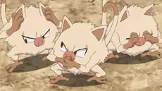 - While Ash and Goh interrogate the three Mankey, one of them covers its ears, another covers its mouth, and the third covers its eyes, referencing the three wise monkeys.
