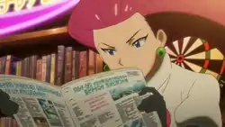 Meanwhile, James checks to see if the coast is clear before sneaking into a phone booth. He punches in the numbers "6-3-4-5-2-6" causing the floor to open up, leading to Team Rocket's secret underground base. James greets his teammates with none other than limited-edition Vermilion City sea breeze flavored potato chips. After polishing off all the chips, Team Rocket are feeling completely stuffed with swollen stomachs to match. Meowth pipes up and suggests they play a game of Team Rocket's special "Nasty Plot Shiritori," a word game where the winner is the last one to not repeat an already said word. Jessie suddenly pauses the game, realizing that only Meowth can understand what Wobbuffet is saying. Meowth replies that no one has repeated a word yet, so the game continues. Jessie goes next, but an argument quickly follows as her teammates insist she just made up a word to avoid breaking the rules.