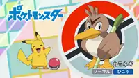 Meanwhile, Goh catches a Grimer followed by an Ekans. He shows his teammates his collection so far using his Rotom Phone, which now totals 37 different species. Suddenly, the same Farfetch'd from earlier appears. Goh tries a fastball throw instead, but Farfetch'd swings its leek and hits the Ball directly into Goh's face again.