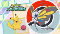 - Goh breaks the fourth wall by pushing away a thought bubble of two Beautifly relaxing on a beach, before explaining to Ash that they were there to watch the Beautifly migrating, not hydrating.