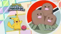 Deciding to punish the twerps for interrupting their relaxation time, Jessie and James declare that they'll use this opportunity to steal Pikachu, and have Pelipper drop them the Rocket Prize Master. They vend a pair of Poké Balls from it, which reveal a Drilbur and a Sandslash, while Goh sends out his newly caught Dugtrio to confront them. Dugtrio goes underground with Dig, and Drilbur and Sandslash do the same with Drill Run. A fierce underground battle ensues, although it naturally goes mostly unseen for those aboveground. Eventually, however, both of the Team Rocket's Pokémon are sent flying out of the ground, allowing Pikachu to tackle them with Quick Attack, before Goh has Dugtrio send them and the trio blasting off with Sand Tomb. As Goh goes to thank his Pokémon for a job well done, he notices that the battle made the ground really soft.