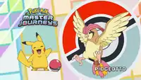 The next day, Ash and Goh head out again, not noticing Full Belly Mode Morpeko following them. When they come close to the shopping mall, they hear commotion and head inside to find Team Rocket using a big vacuum to steal loads of Pokémon. The trio boasts that they've eaten their fill for the first time in ages and are feeling great. While Ash and Goh prepare to confront the trio, Morpeko notices the cart of food the trio has bought. Jessie and James call down the Rocket Prize Master, but the Pokémon they get, a Natu and a Zigzagoon, seem underwhelming to them. During the ensuing battle, Natu gets hit by Cinderace's Pyro Ball and is sent flying into Morpeko, who had just been about to dig into the contents of the food cart. As Team Rocket notices Morpeko, it turns into its Hangry Mode, and, enraged by its meal being interrupted, uses Stomping Tantrum, which deals super effective damage on both Pikachu and Cinderace. Jessie is delighted to see such power on their side, but unfortunately, Morpeko next uses Aura Wheel on the trio and sends them blasting off again. The stolen Pokémon are freed, and Morpeko empties the food cart before walking away. Ash and Goh are left confused by what just happened, but their attention is quickly redirected elsewhere when they spot a Pidgeotto. Goh quickly throws a Poké Ball at it, finally catching the Pokémon that's been eluding him for a while now.