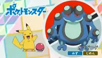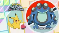 Goh and Pikachu notice an awful stench in the air and discover it's coming from a sewer that the tunnel is connected to. In the sewers, they're attacked by a Seismitoad. After Pikachu tries to battle it on his own, only to have his Thunderbolt fail to do anything due to Seismitoad being part Ground type, Goh instructs him to use Iron Tail instead. The attack hits, but before Goh can throw a Poké Ball to catch Seismitoad, Pikachu hits it with another Iron Tail, causing it to fall into the water and swim away. While Goh is dismayed, he realized that Pikachu's way of taking the lead reminds him of Ash, showing that Pokémon indeed tend to take after their Trainers.