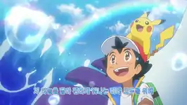 Brief cutscenes are then shown which include Ash, Riolu, Bea, Raboot, Magikarp, Leon, and Charizard, and Chloe and Eevee. Pikachu, Lucario and Cinderace perform a high five. The final scene is of Ash, Goh and Pikachu posing before this transitions to the Pokémon W series logo.