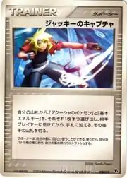Jackie's Capture (Japanese: ジャッキーのキャプチャ Jackie's Capture) is a Supporter card. It is part of the Movie Commemoration VS Pack: Sea's Manaphy.