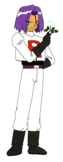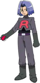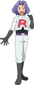 James (Japanese: コジロウ Kojirō) is a member of Team Rocket, more specifically part of a trio with Jessie and Meowth, that follows Ash Ketchum and his friends around in the Pokémon anime, usually trying to steal Ash's Pikachu.