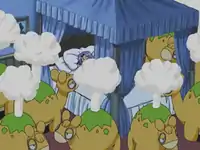 After Jessie fell ill from inhaling Vileplume Stun Spore in The Stun Spore Detour, James and Meowth attempted to find Salveyo weed. However, they had to contend with Misty and her newly befriended Poliwag, also on a mission to heal her friends, for the rare medicinal plant. Despite their antics, Misty later gave them some Salveyo weed.