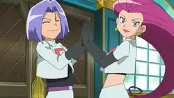 After Ash's Monferno accidentally uncovered James's long-hidden treasure chest, containing a childhood love letter, all matter of chaos unfolded in The Treasure Is All Mine!. While trying to keep the chest's content a secret, James's obsessed fiancée, Jessebelle, made an unwelcome appearance and tried to again get James to marry her.